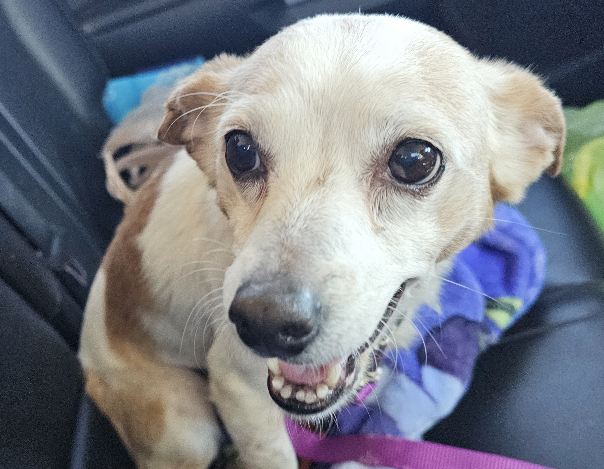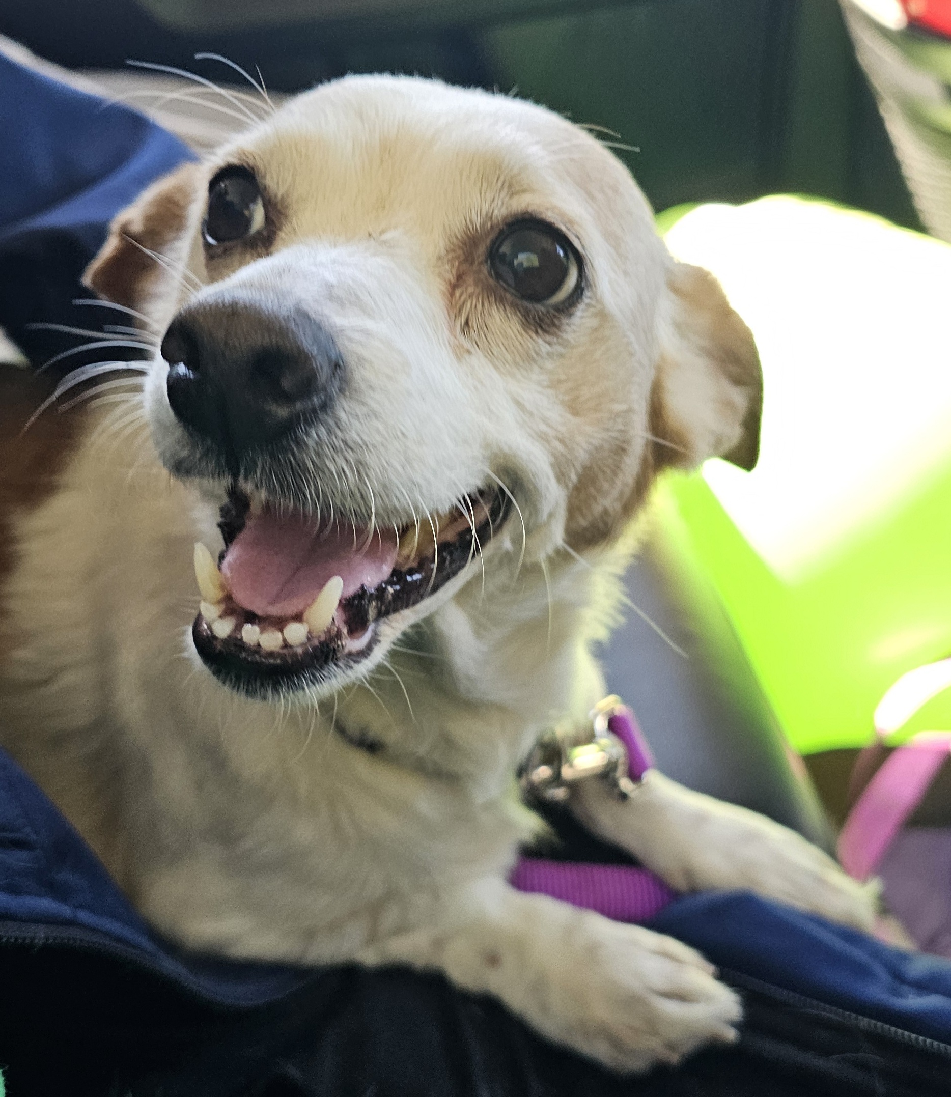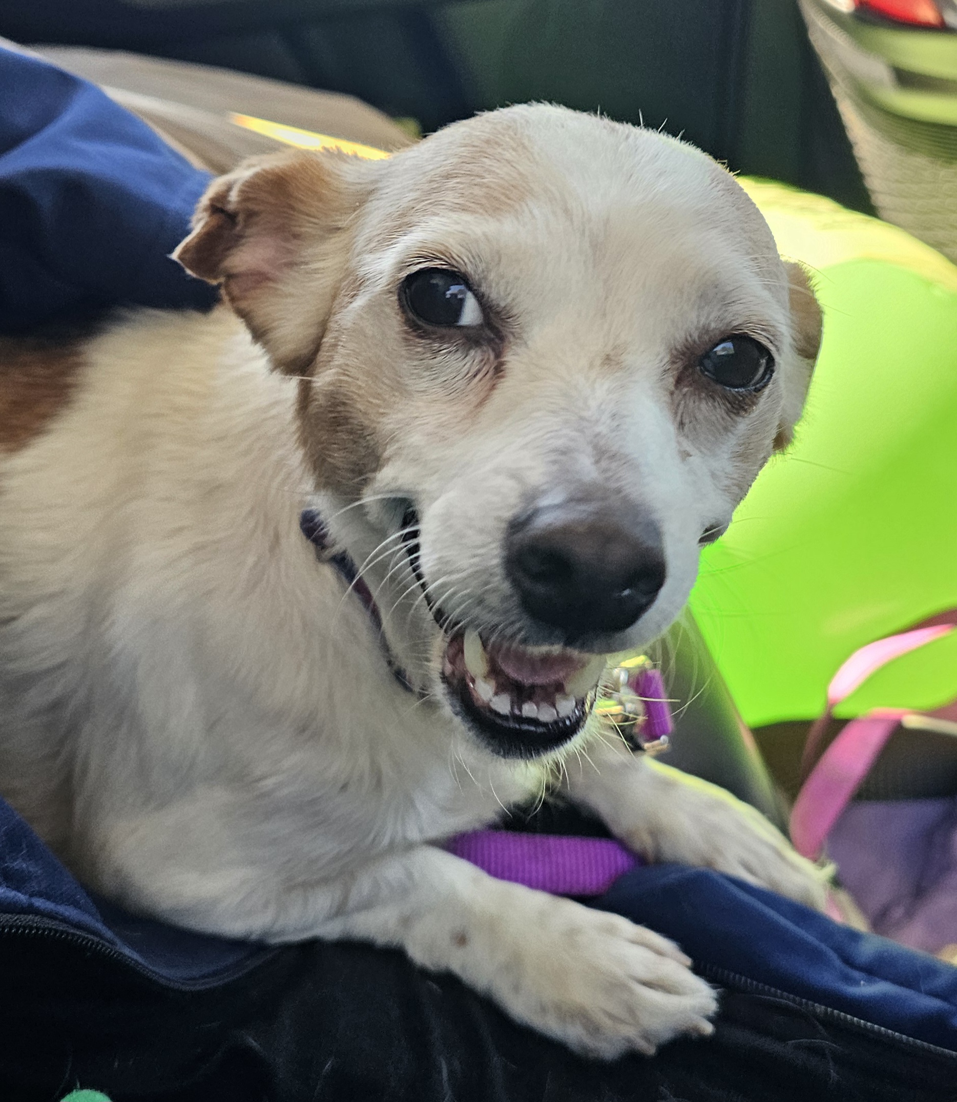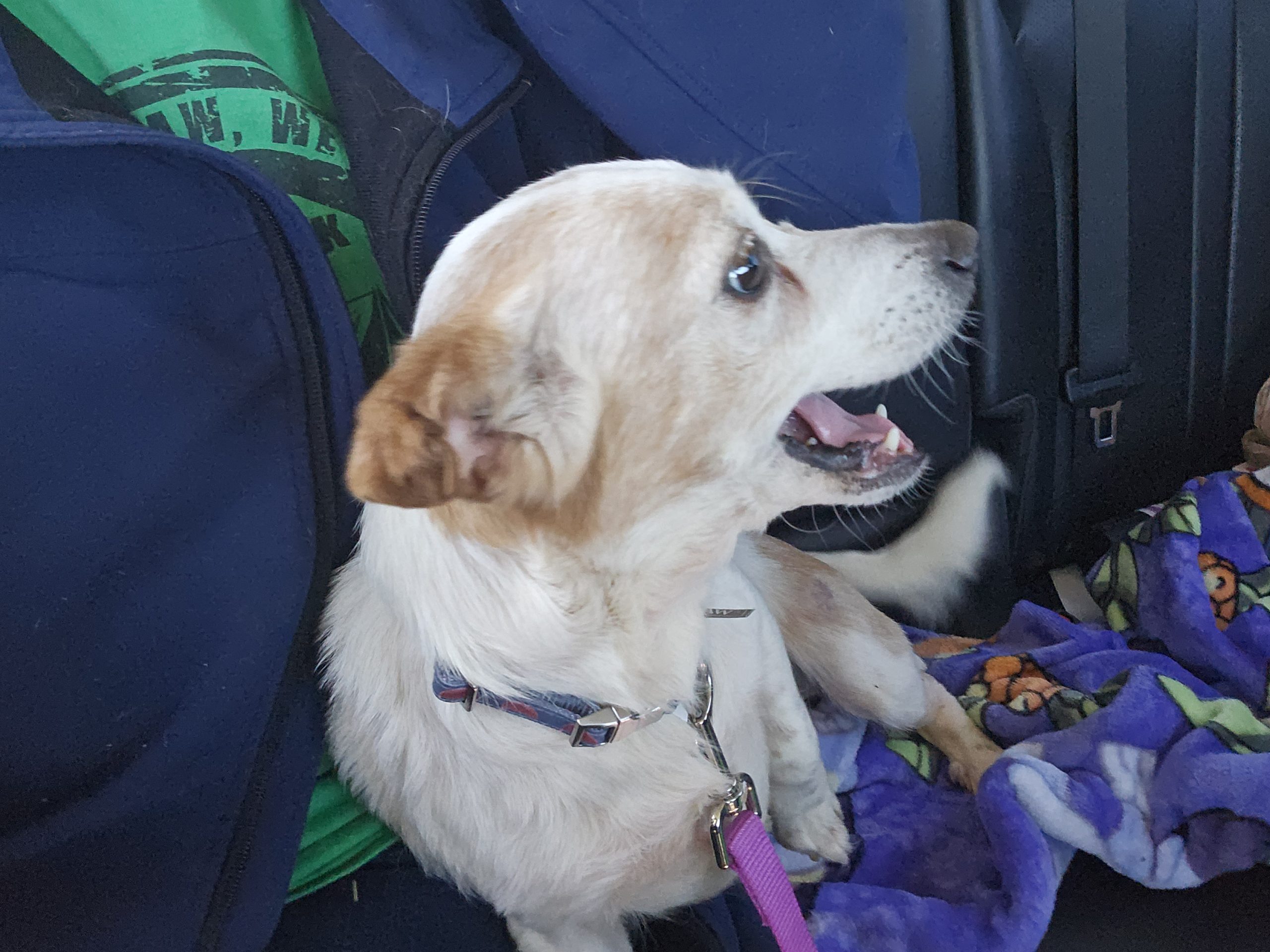 Evangeline Trouble is not a fan of cats. She absolutely LOVES car rides and would be an amazing companion to anyone who wants a cuddle bug. She would have no issues with spending all day and night with her people!!! Take her with you.... She is up for all adventures with her family... vacation, shopping, long walks.....