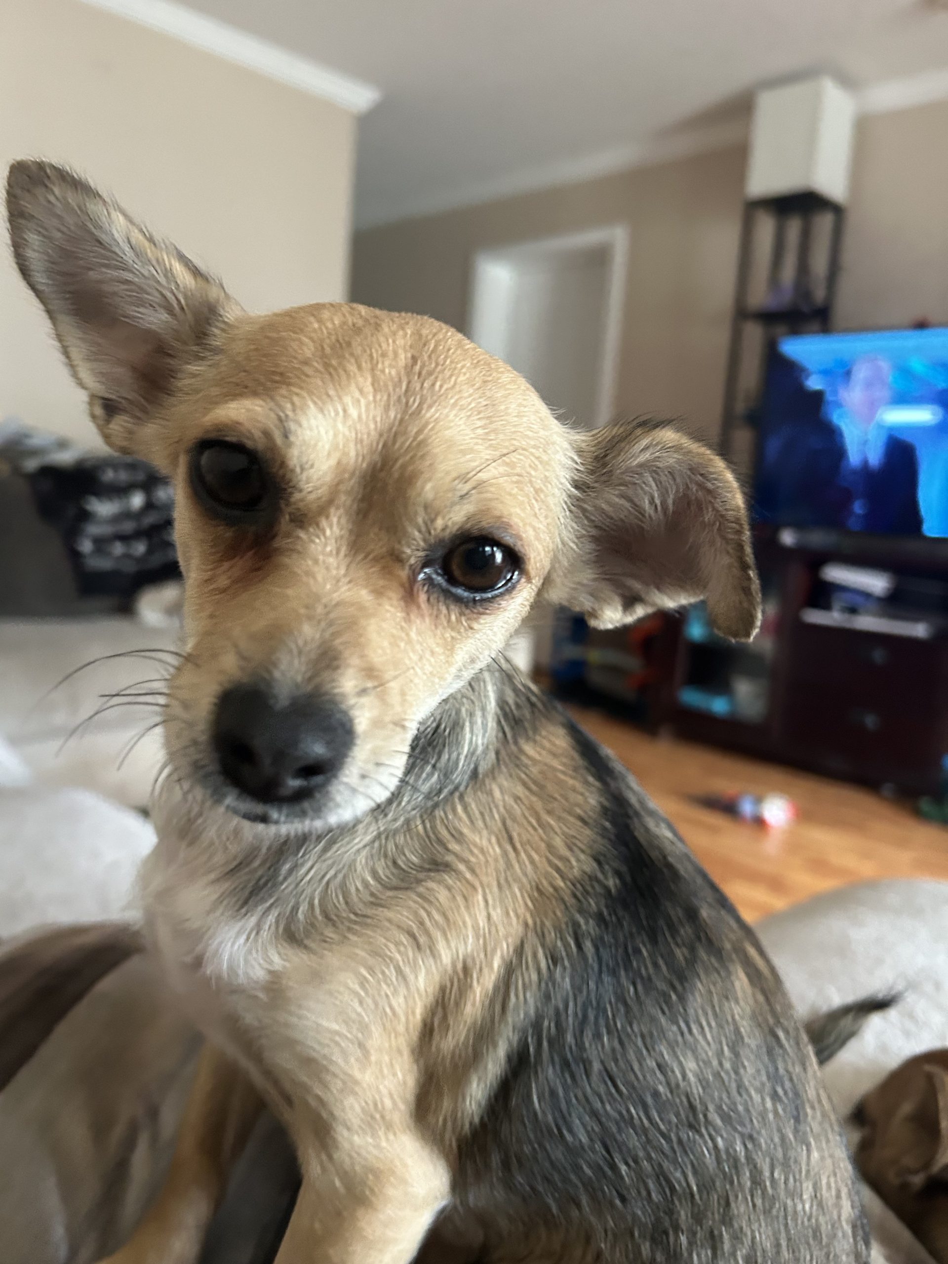 Rescued from a hoarding situation along with a bunch of other little dogs this little girl shows no signs of being abandoned and unloved. Since first coming into Rescue, she has been exemplary by using the PP pad, loving the other animals in the house, and just wanting to snuggles. Luisa Absolutely loves to give kisses and hug. Hugs!!!!! Please come give this little lady her forever home.