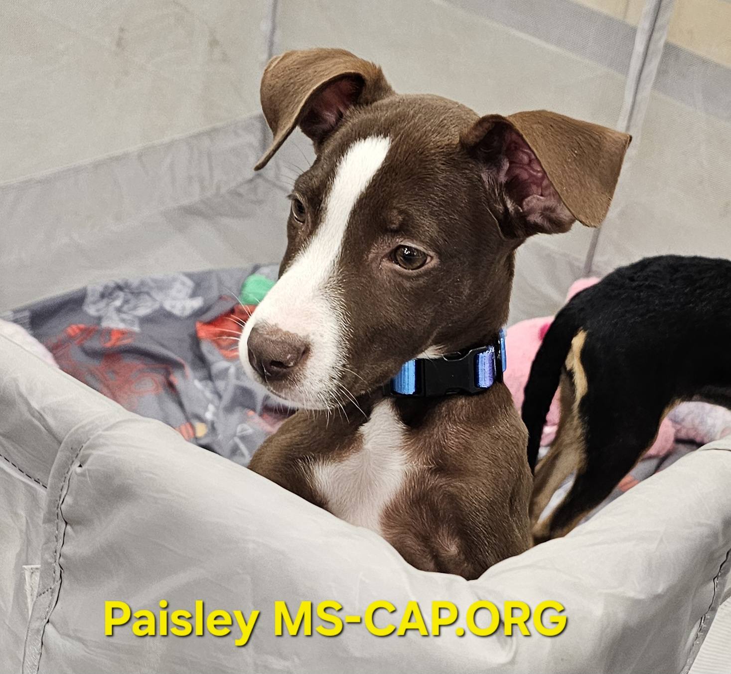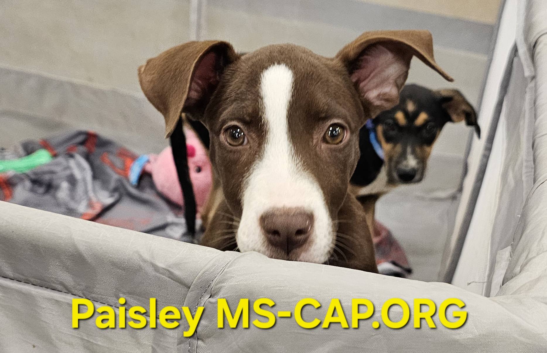 This sweet and playful puppy was picked up by Simpson County Sheriff Animal Control and when no one claimed her or her sister, they were both sent to rescue to find new homes!! Both pups have been fixed, vaccinated and microchipped.