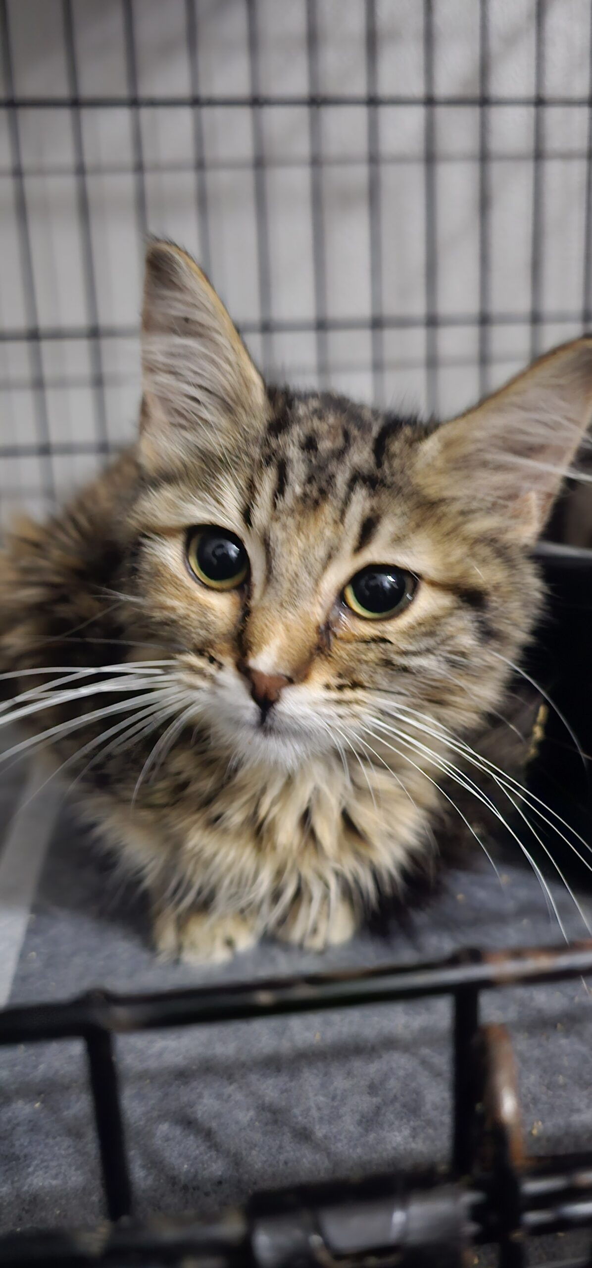 I am a sweet Cuddly little girl. I was a stray kitten turned into rescue with my mom!! She raised me and I am ready to go off into the BIG world and be my own kitty!! I LOVE laser pointers and toys!! I am very affectionate!!