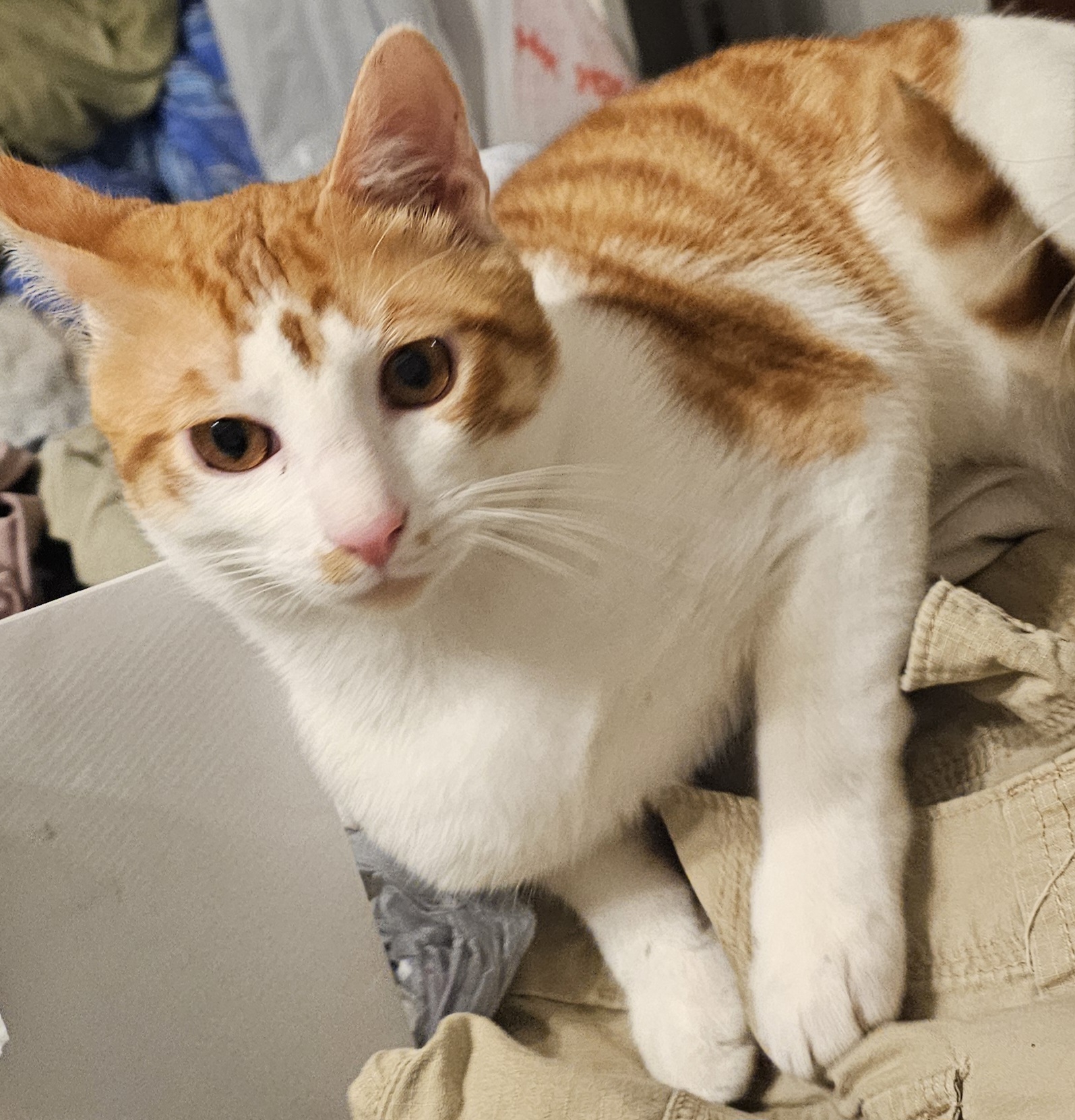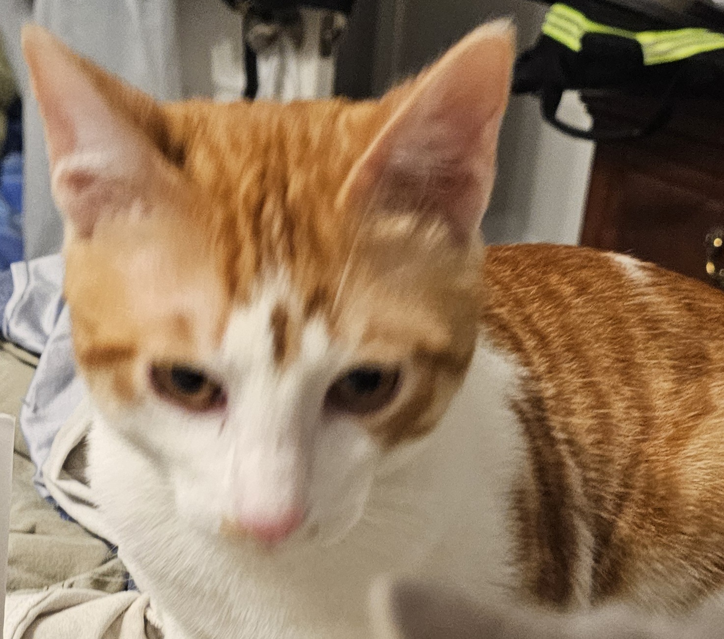 Sherbert and his siblings were discovered under a porch in a retirement community in Mandeville, Louisianna. They had a wonderful foster that bottle fed them and took good care of them until they would come into rescue here. They will be fixed and available for adoption in Mid January 2026.