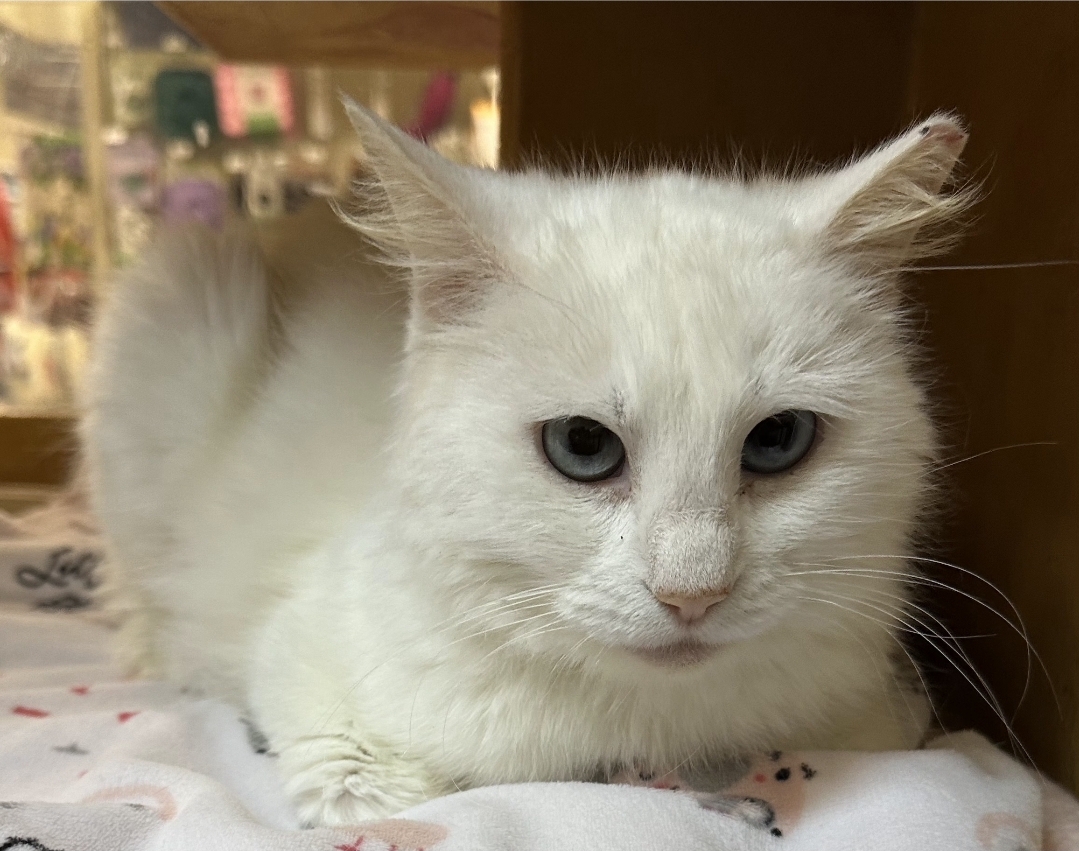 Snow White is a sweet and loving girl. She was rescued by a nice lady in Meridian Mississippi from a trailer park. She was unfortunately chased by some dogs in the past and is a little scared of bigger dogs. She gets along with most cats. She loves cuddles and treats!!